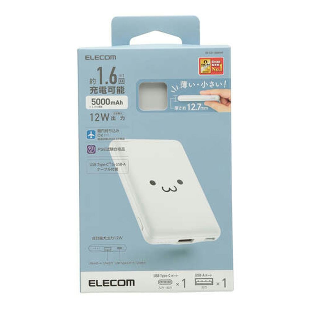 エレコム 薄型コンパクトモバイルバッテリー ホワイトフェイス 5000mAh/2.4A/Cx1+Ax1 DE-C37-5000WF