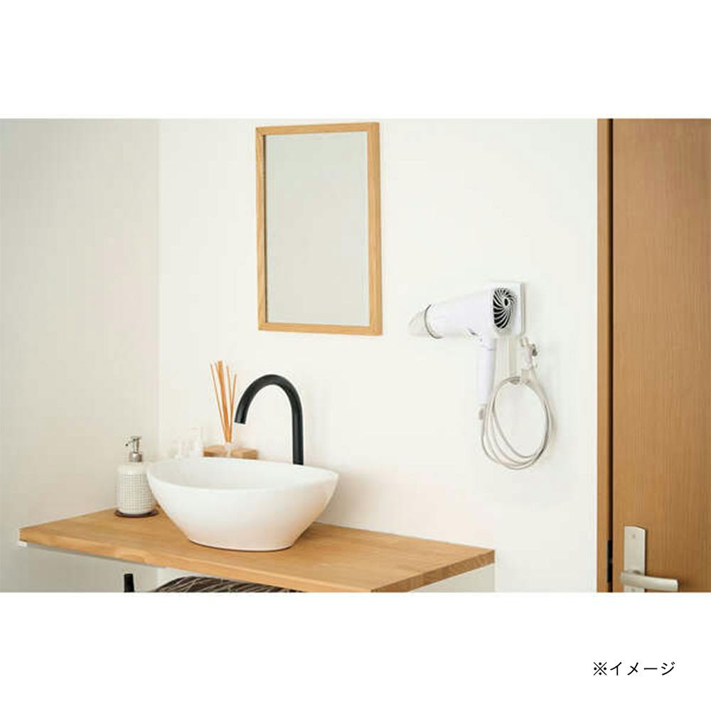 2個の吸盤でしっかりドライヤーを支え、洗面所の壁面や鏡に装着できるドライヤーホルダーです。折りたたみタイプ・ハンマー型のどちらにも使えます。プラグを固定できるフック付きで、まとめたコードが解けずきれいに収納できます。
