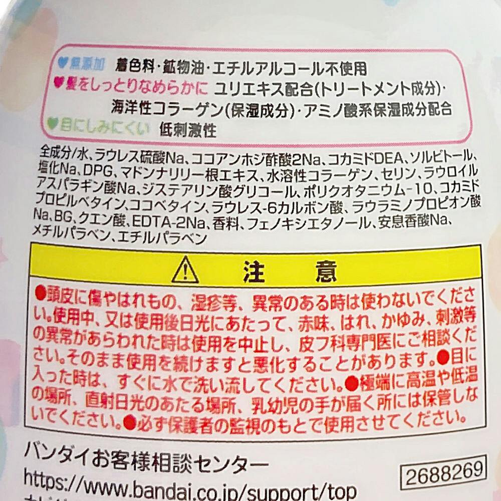 ●無添加/着色料・鉱物油・エチルアルコール不使用●髪をしっとりなめらかにユリエキス配合(トリートメント成分)海洋性コラーゲン(保湿成分)・アミノ酸系保湿成分配合●目にしみにくい低刺激性