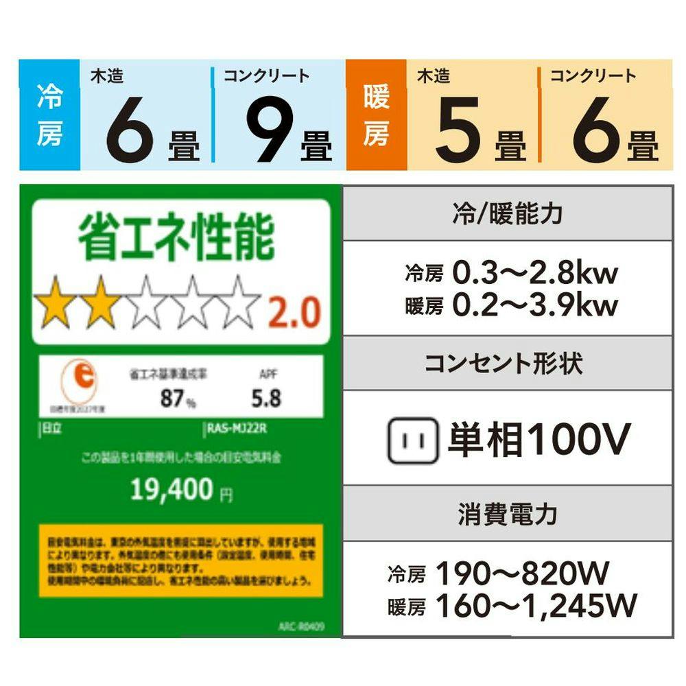 日立 エアコン 白くまくん MJシリーズ 6畳 スターホワイト RAS-MJ22R