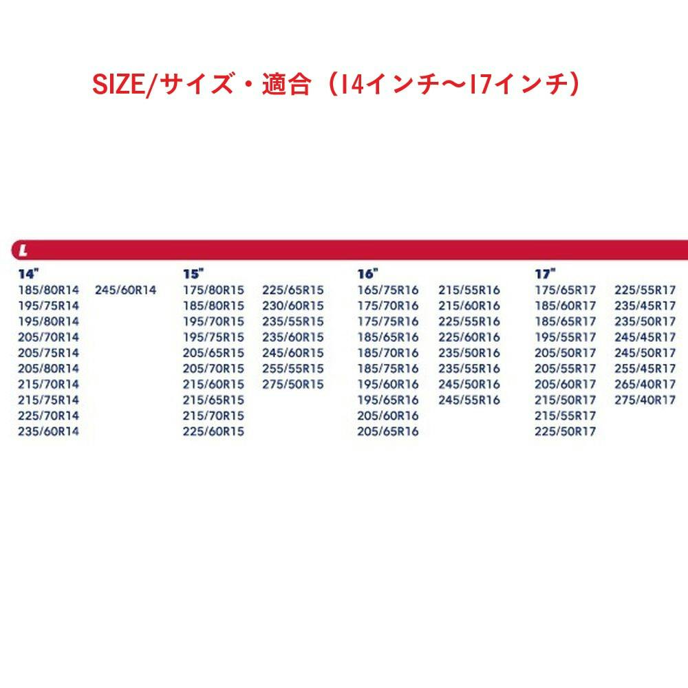 タイヤ上部に被せ、車両を前進または後進させ、タイヤを半回転させます。最後に残りを被せれば装着完了です。装着後は自動で正しい位置にセンターリングされます。クリアランスが狭いスポーツカーやスタッドレスがない大口径タイヤにも対応しています。
