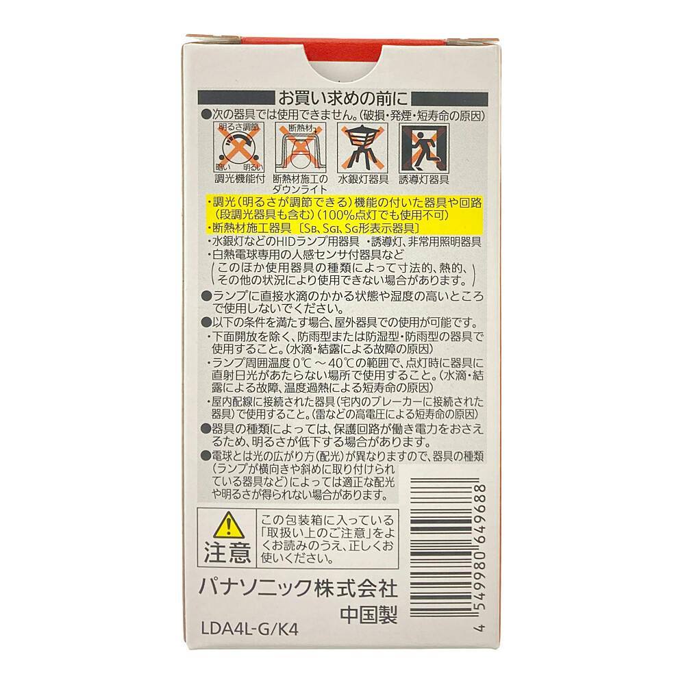 • パルック LED電球 広配光 電球色相当 40形 LDA4LGK4