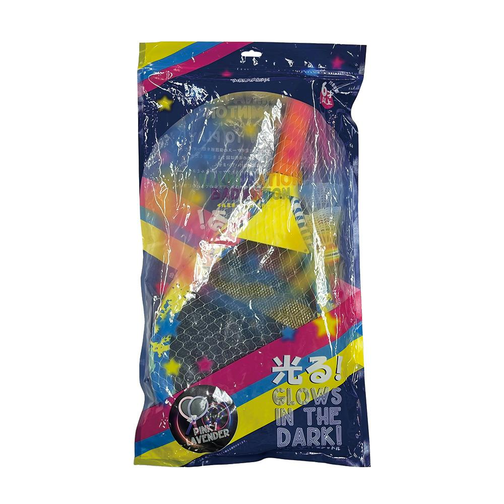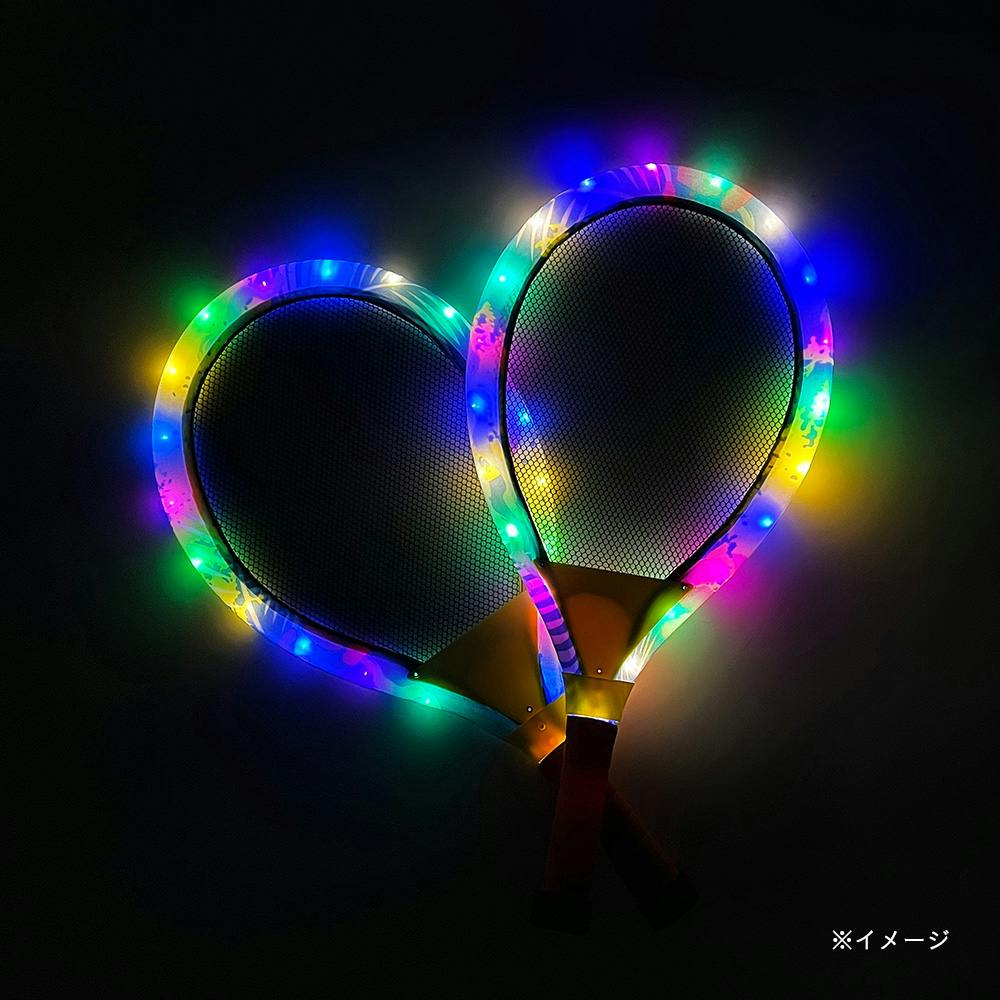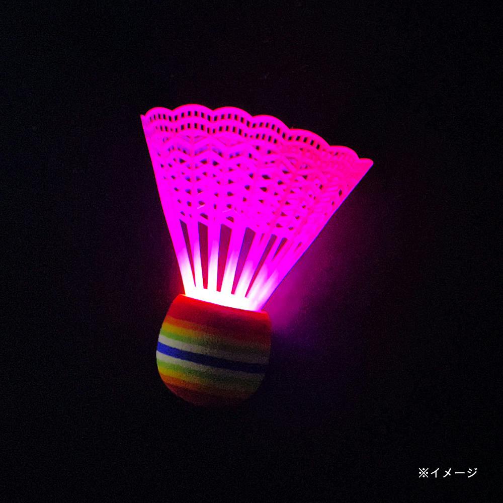 スイッチを入れるとラケットのフレームが色とりどりのLEDで灯ります。シャトルは振動によって光るのでキレイに舞い上がります。