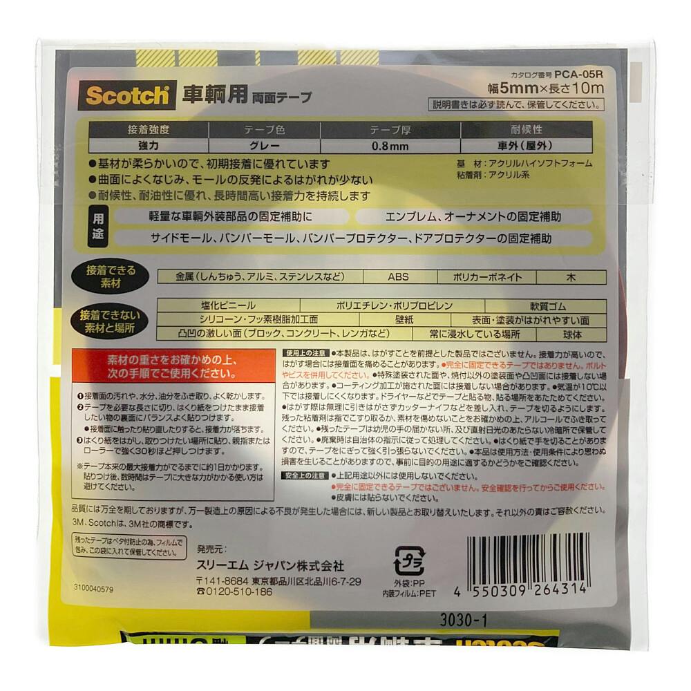 3M スコッチ 車輌用 両面テープ 屋外用 PCA-05R 幅5mm×長さ10m×厚み0.8mm