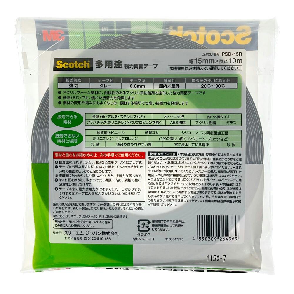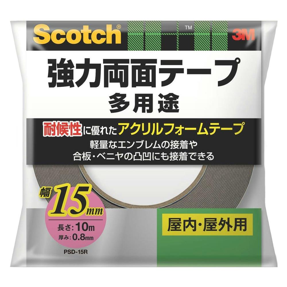 3M スコッチ 強力両面テープ 多用途 屋内・屋外用 PSD15R 幅15mm×長さ10m 厚み0.8mm