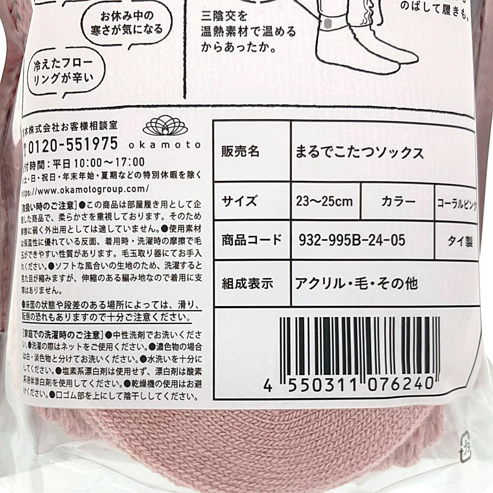 婦人 靴下サプリ まるでこたつソックス ハイソックス コーラルピンク 23.0cm-25.0cm