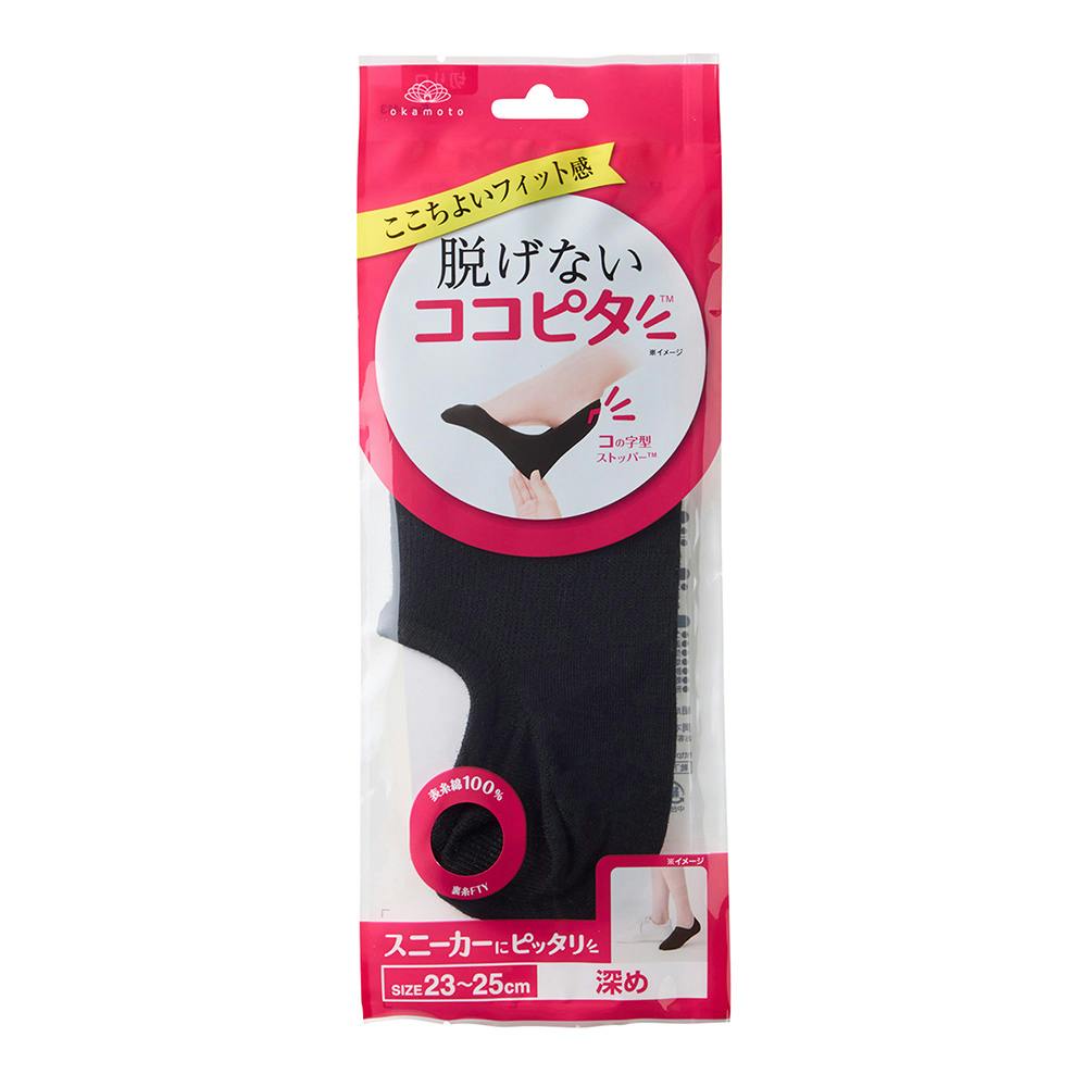 婦人靴下 脱げないココピタ スニーカー用 深め 無地 クロ 23.0cm-25.0cm