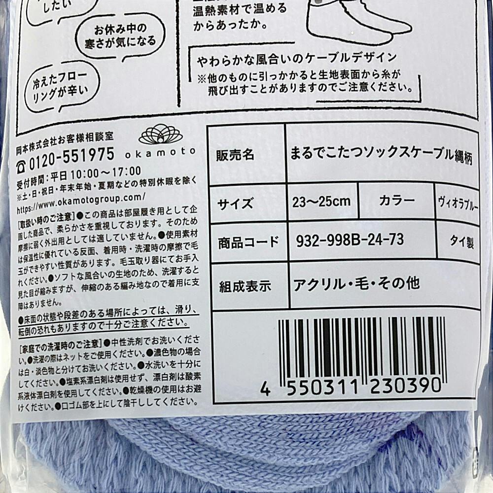 婦人サプリ まるでこたつソックス ケーブル ヴィオラブルー 23cm-25cm