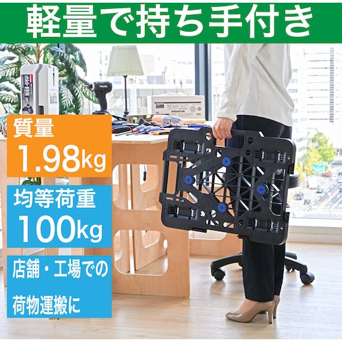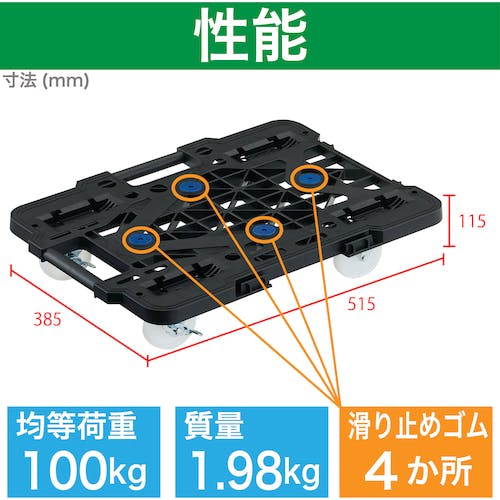 【CAINZ-DASH】トラスコ中山 樹脂製平台車 連結式ルートバン メッシュタイプ 515X385 ナイロン車輪 4輪自在 ストッパー付 黒 MPK-500NJS-BK【別送品】