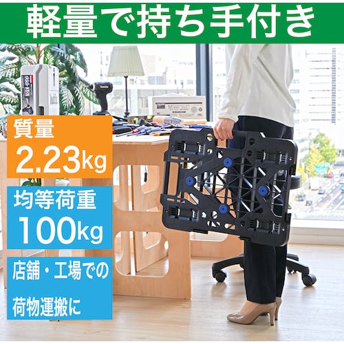 • 【CAINZ-DASH】トラスコ中山 樹脂製平台車 連結式ルートバン メッシュタイプ 615X415 ナイロン車輪 オール自在 黒 MPK-600NJ-BK【別送品】