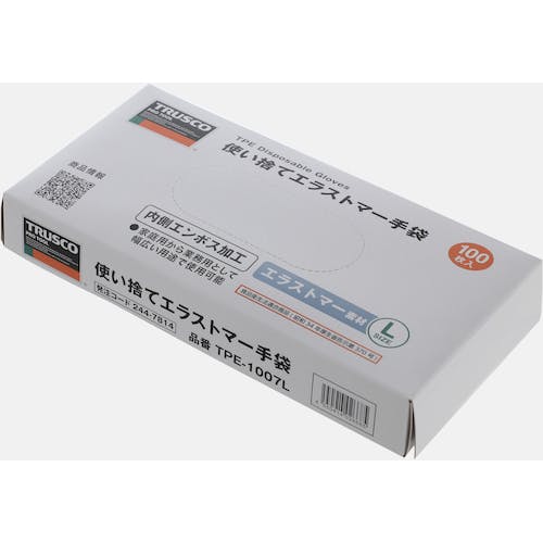 【CAINZ-DASH】トラスコ中山 使い捨てエラストマー手袋 内エンボス Lサイズ (100枚入) TPE-1007L【別送品】