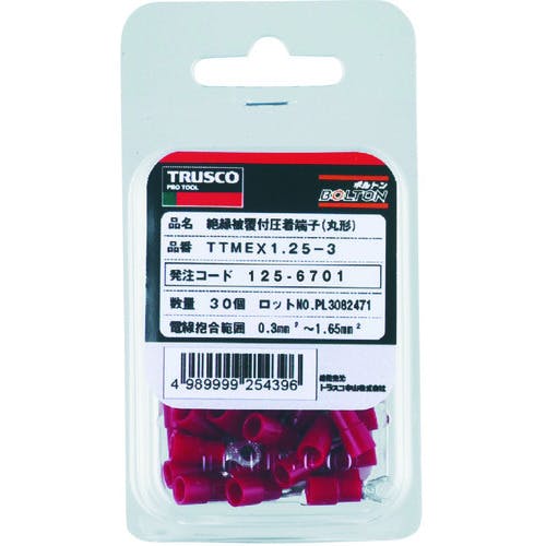 【CAINZ-DASH】トラスコ中山 環境配慮型絶縁被覆付圧着端子丸形φ6.4長さ30.5 (15個入)黄 T-TMEX5.5-6【別送品】