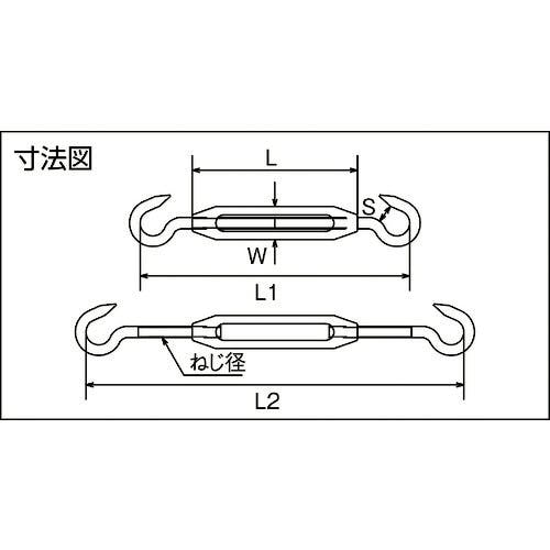 • 【CAINZ-DASH】トラスコ中山 ステンレス(SUS316)製 枠式ターンバックル フック&フックタイプ ねじ径W3/8 TTB16-9H【別送品】