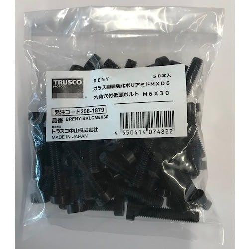 【CAINZ-DASH】トラスコ中山 ガラス繊維強化ポリアミドMXD6 RENY黒 六角穴付低頭ボルト M3X16 50本 BRENY-BKLCM3X16【別送品】