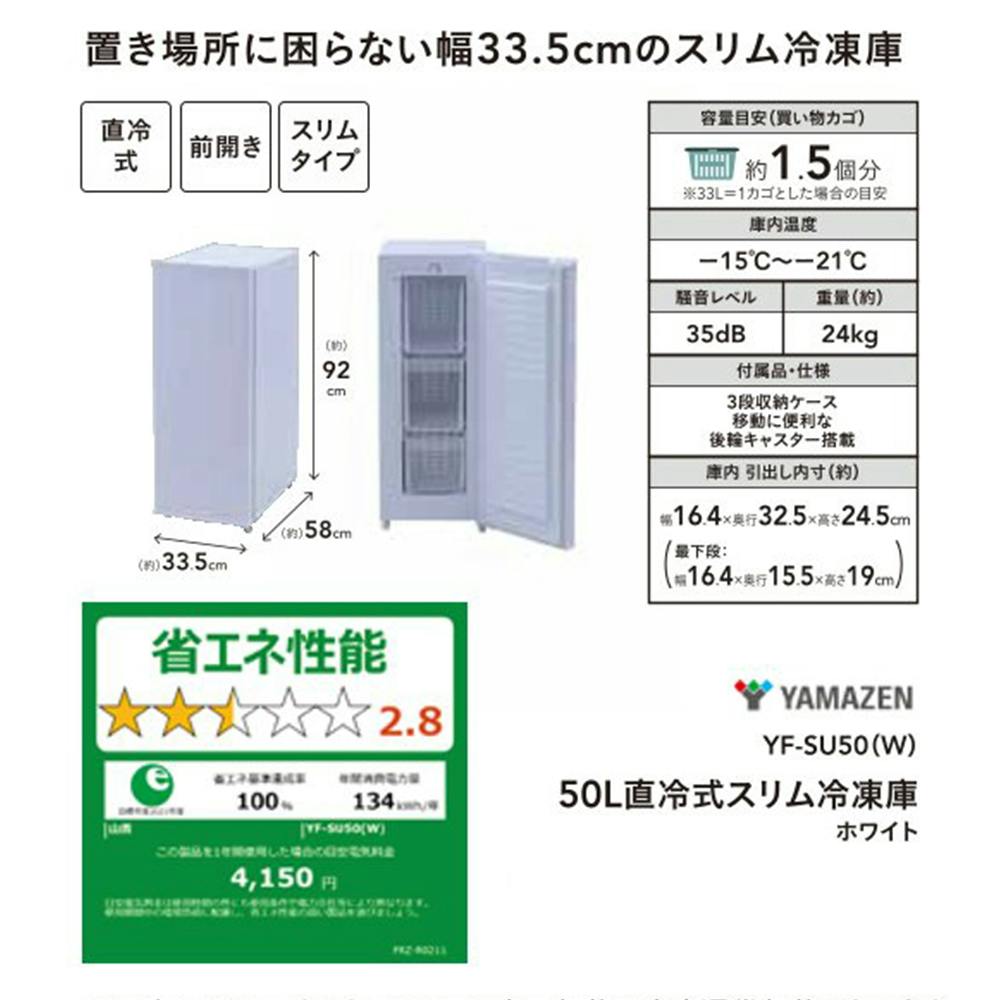 【送料無料】50L直冷式スリム冷凍庫 YF-SU50-W【別送品】