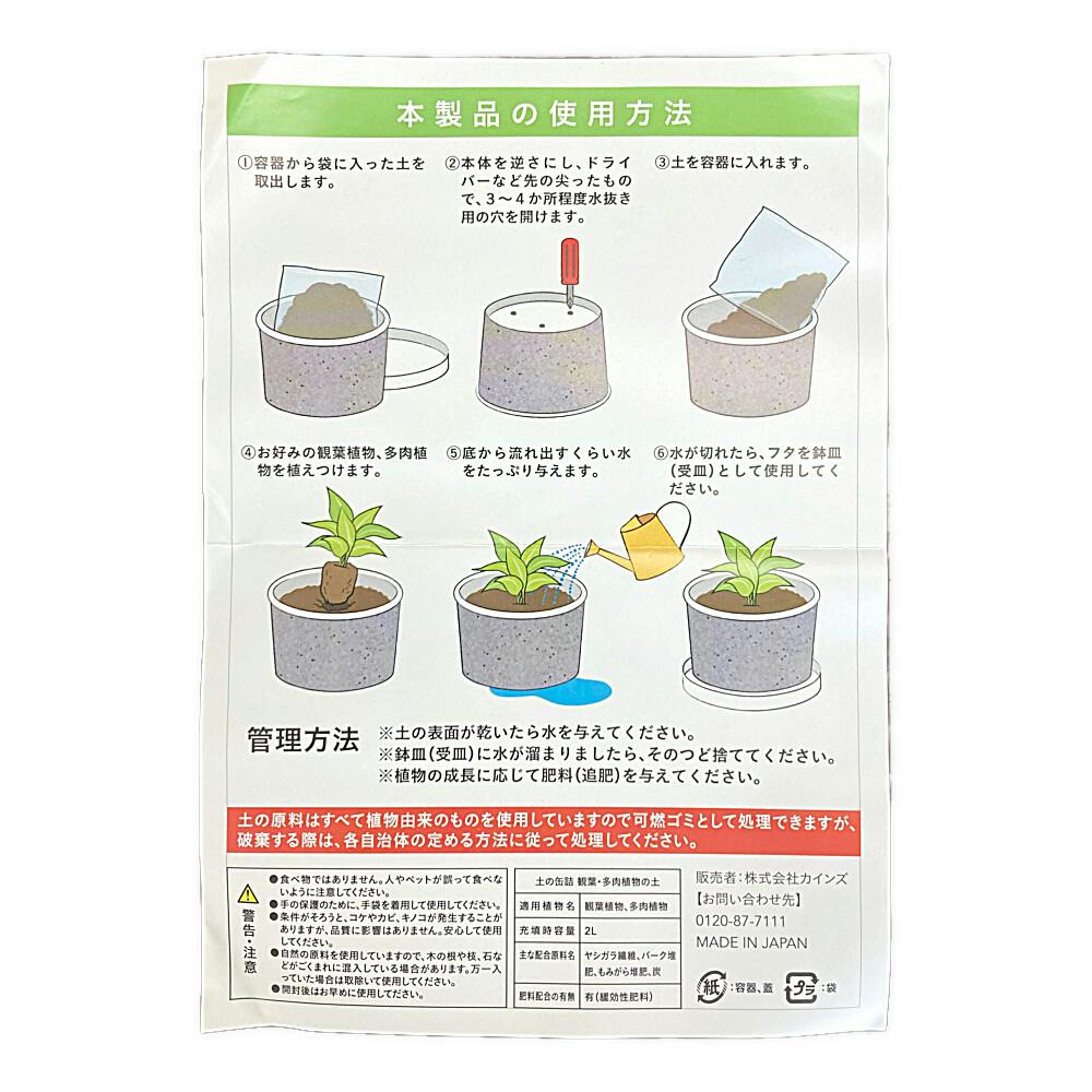 カインズ 土の缶詰 観葉・多肉植物の土 2L ホワイト