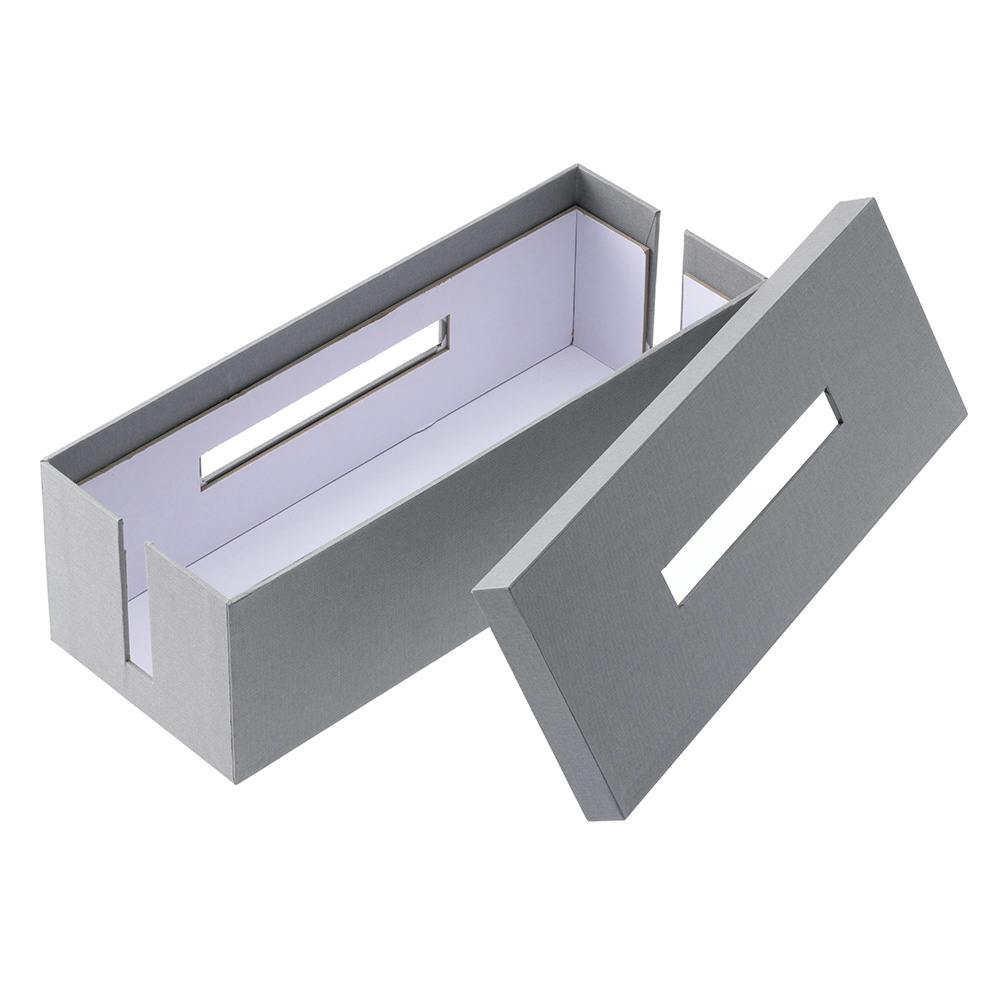 机上のコンセントをすっきり収納できる。フタはリバーシブルで使える(フラットとトレー)