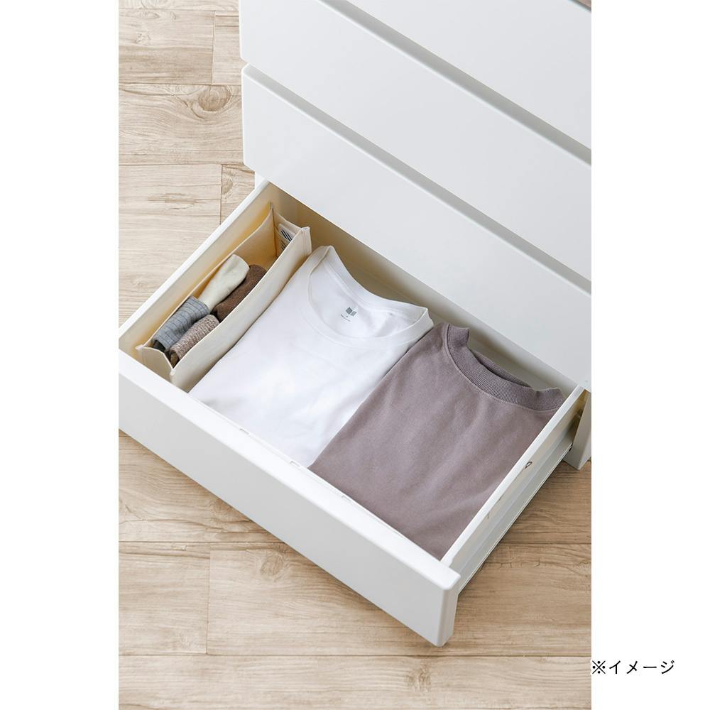 引出しの中身を仕切って収納できる。内ポケットに防虫剤などが入れられる。