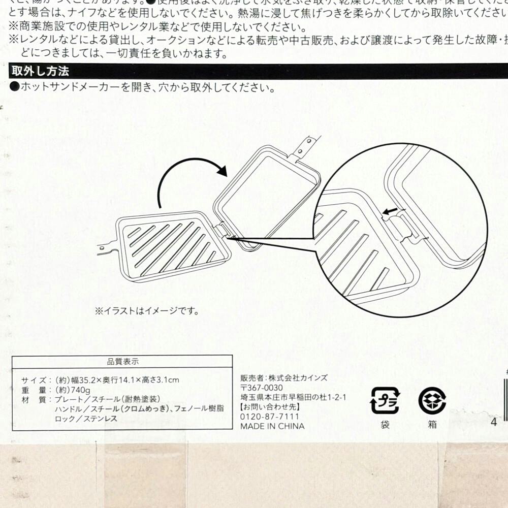 カインズ ホットサンドメーカー2枚用 仕切り付き