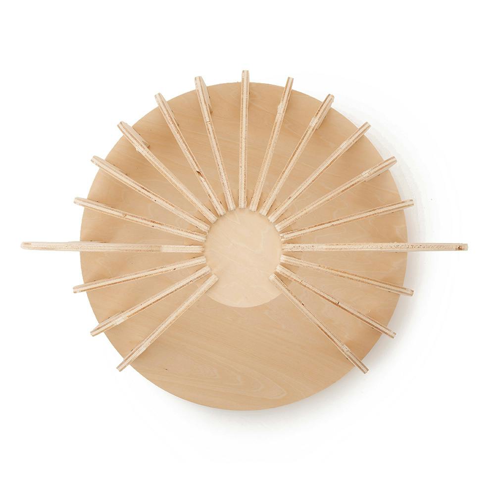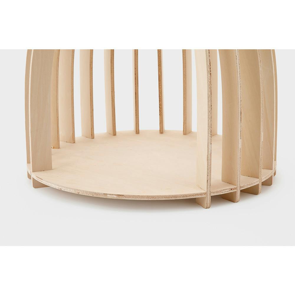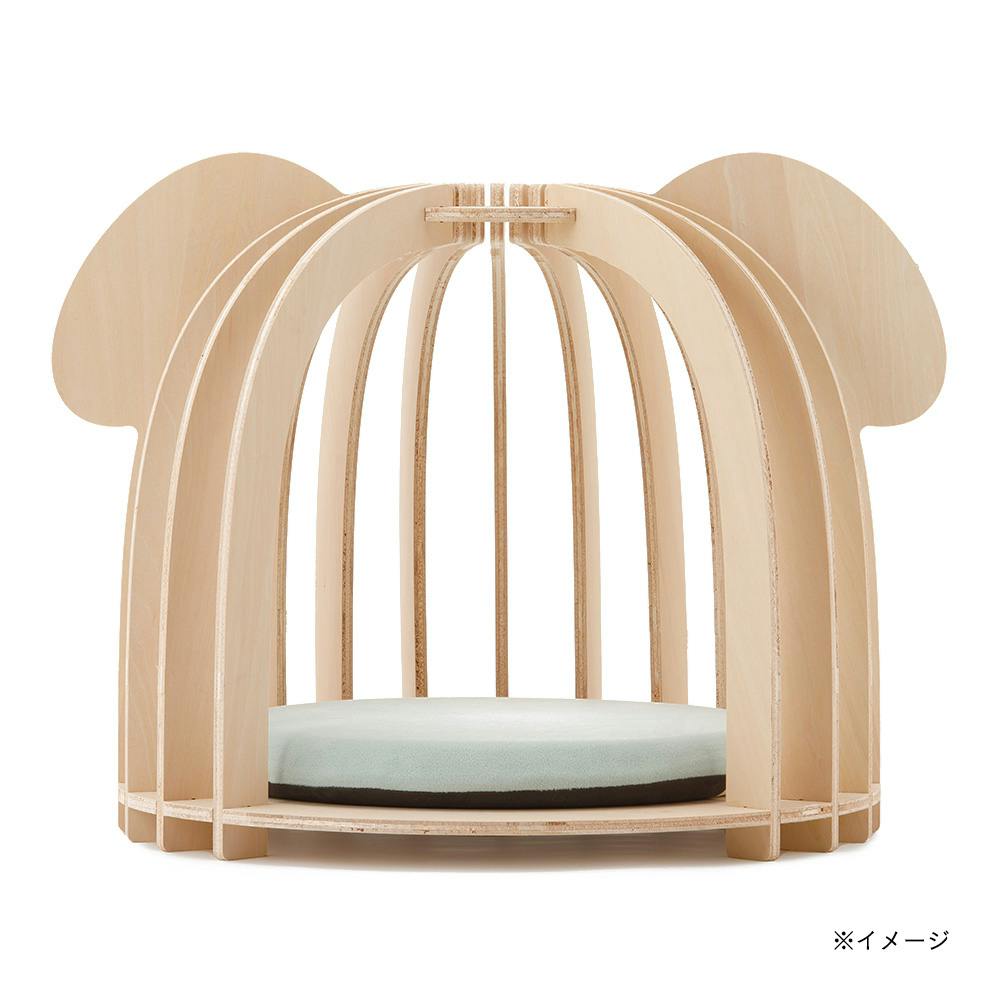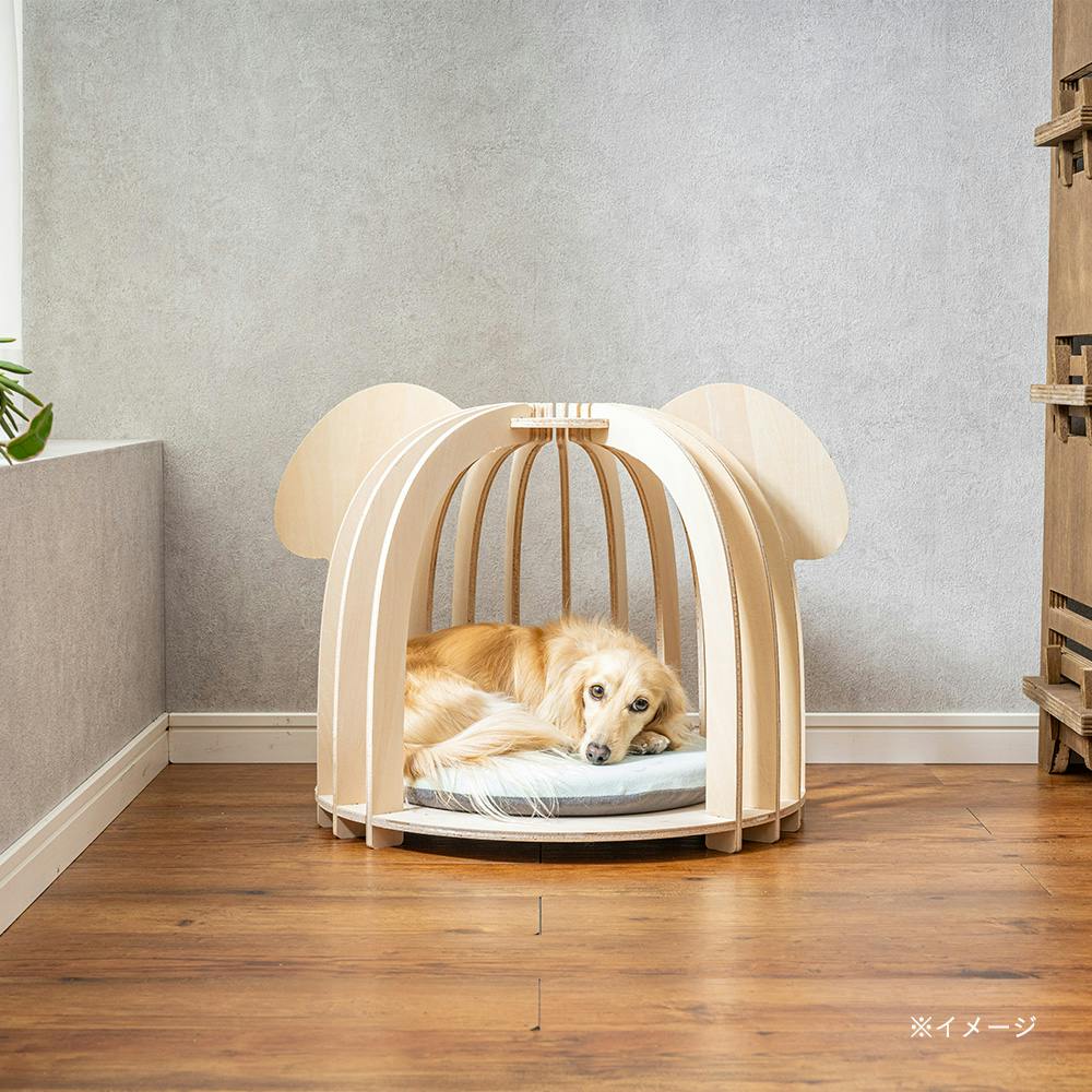 ShopBotの加工技術を活かし、犬の耳の形をあしらった犬用のベッド用スペースです。中にお好みのクッションなどを入れて使うと、より心地よい空間になります。