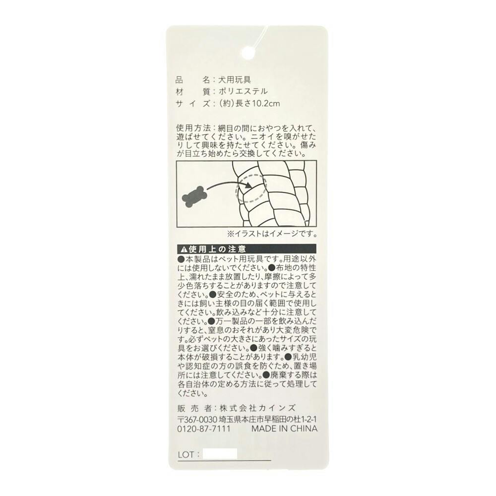 ●本製品はペット用玩具です。用途以外には使用しないでください。●布地の特性上、濡れたまま放置したり、摩擦によって多少色落ちすることがあります。