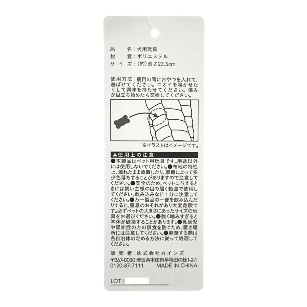 ●本製品はペット用玩具です。用途以外には使用しないでください。●布地の特性上、濡れたまま放置したり、摩擦によって多少色落ちすることがあります。