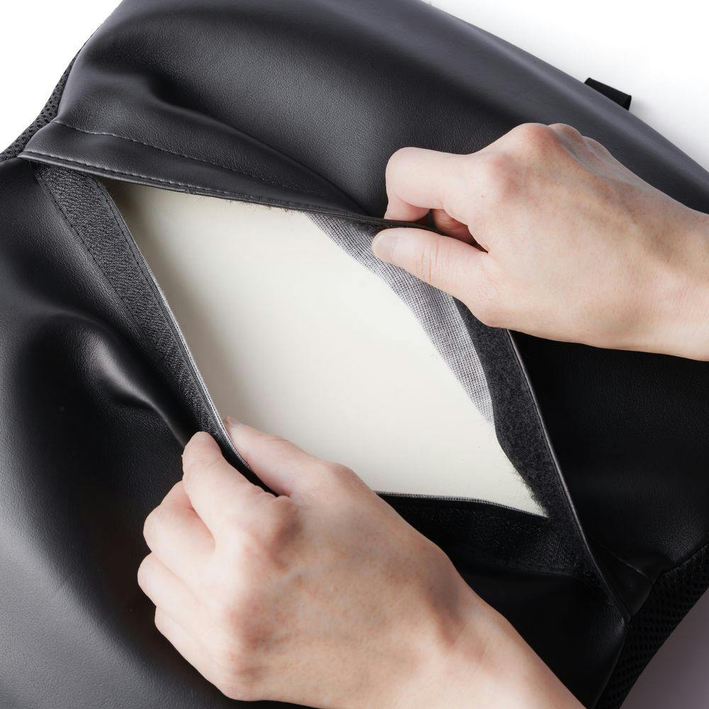 表地/塩化ビニル樹脂、ポリエステル100%;裏地/塩化ビニル樹脂;詰物:ウレタンフォーム
