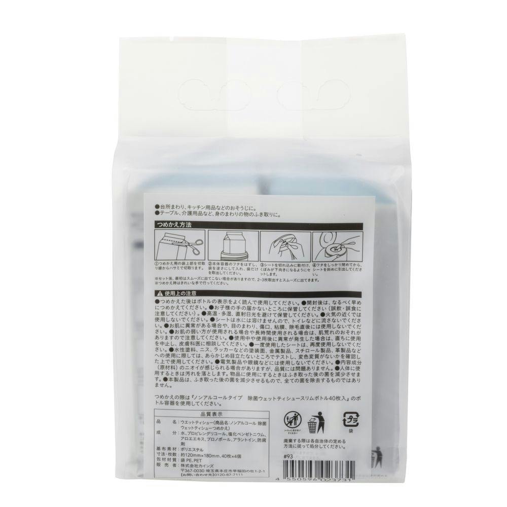 ウェットティシュー スリムタイプ ノンアルコール 詰替 4個パック