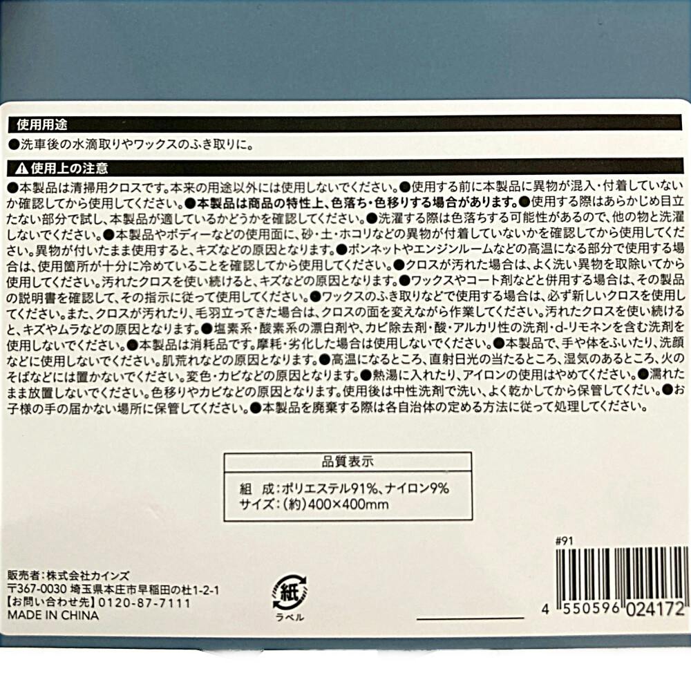 ●本製品は清掃用クロスです。●使用する前に本製品に異物が混入・付着していないか確認してから使用してください。●本製品は商品の特性上、色落ち・色移りする場合があります。●ワックスの拭き取りなどで使用する場合は、必ず新しいクロスを使用してください。