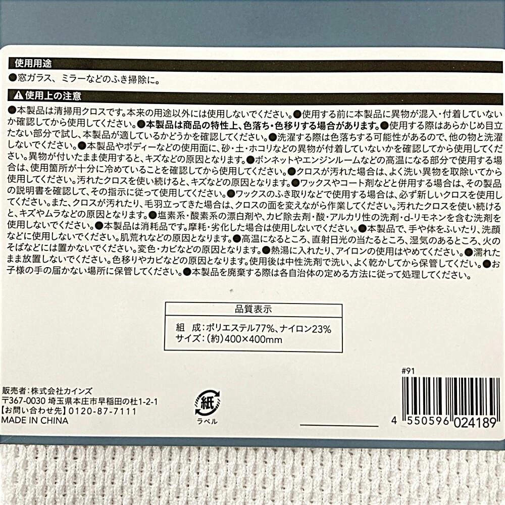 ●本製品は清掃用クロスです。●使用する前に本製品に異物が混入・付着していないか確認してから使用してください。●本製品は商品の特性上、色落ち・色移りする場合があります。●ワックスの拭き取りなどで使用する場合は、必ず新しいクロスを使用してください。
