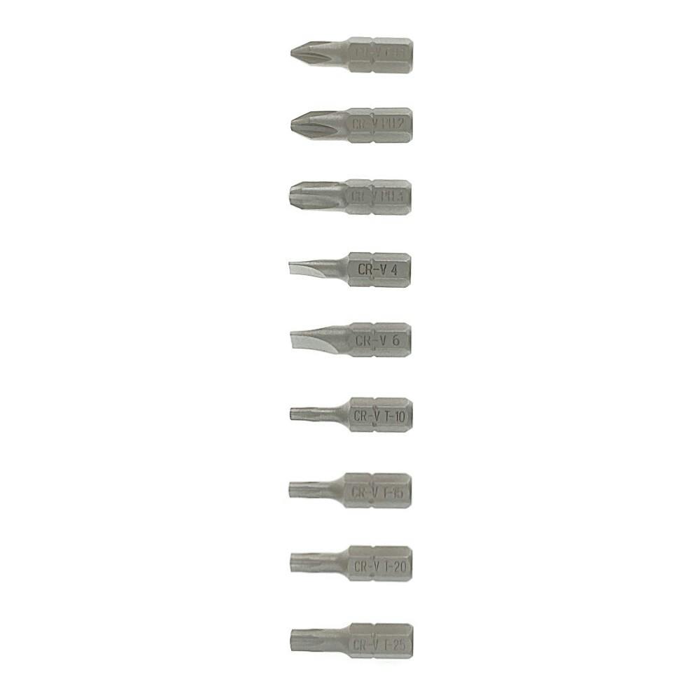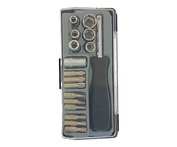●6.35mm角ソケット:5.5mm、6.0mm、7.0mm、8.0mm、10mm、12mm●ドライバービット:+1、+2、+3、-4、-6、T10、T15、T20、T25●スピナーハンドル●ビットアダプタ