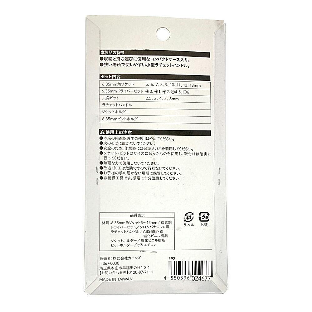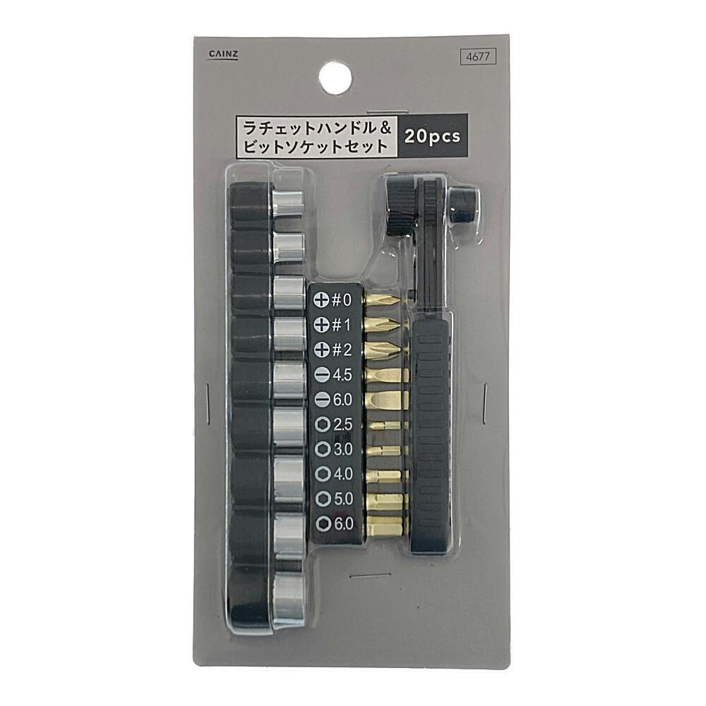 カインズ ラチェットハンドル&ビットソケットセット 20P
