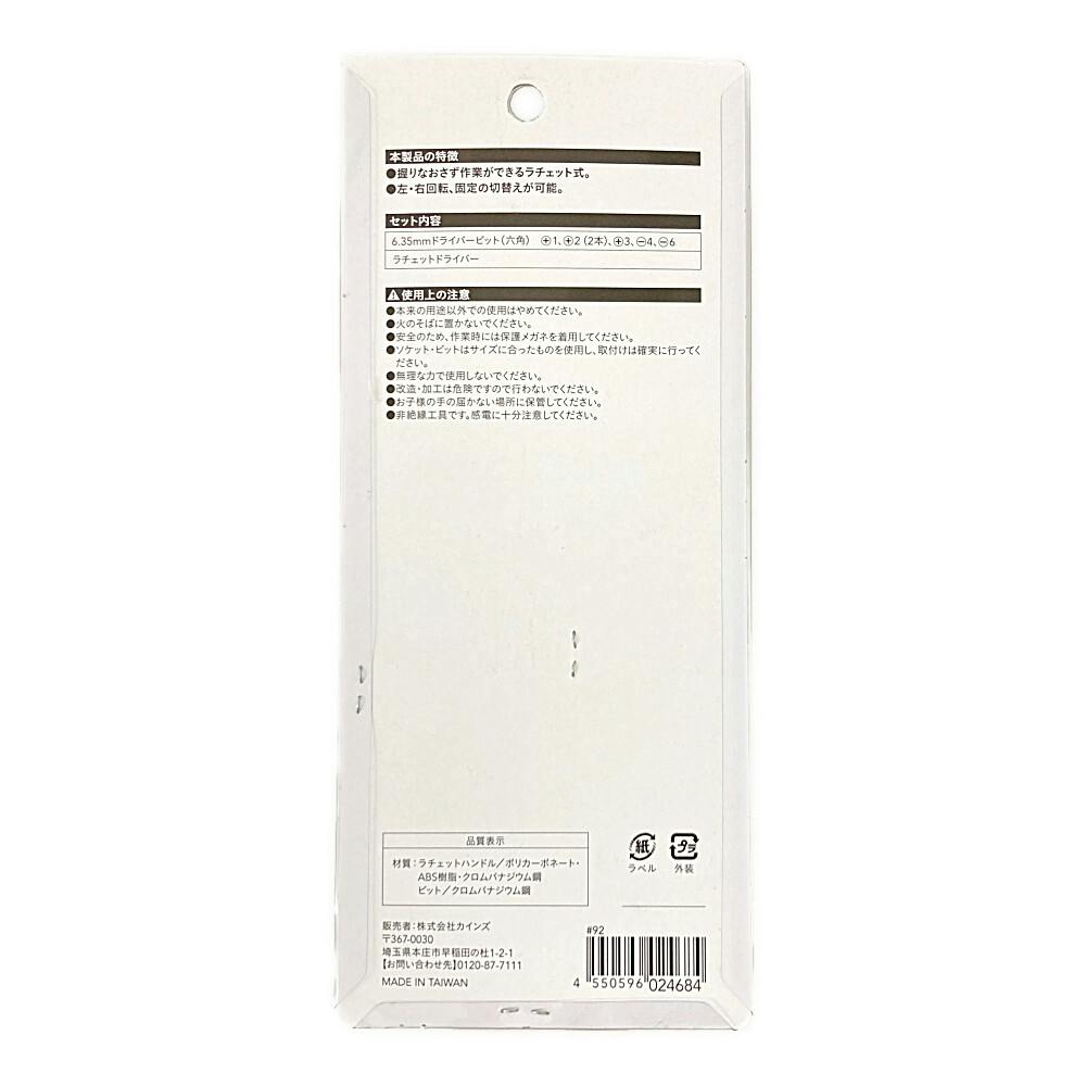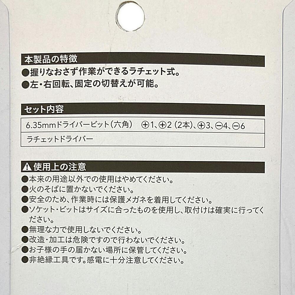●ビット:+1、+2(2本)、+3、-4、-6●ラチェットドライバー