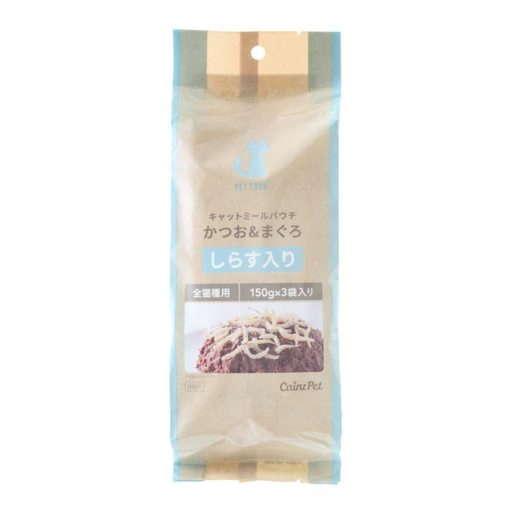 かつおとまぐろのおいしさたっぷりのウェットフードにしらすをトッピングしました