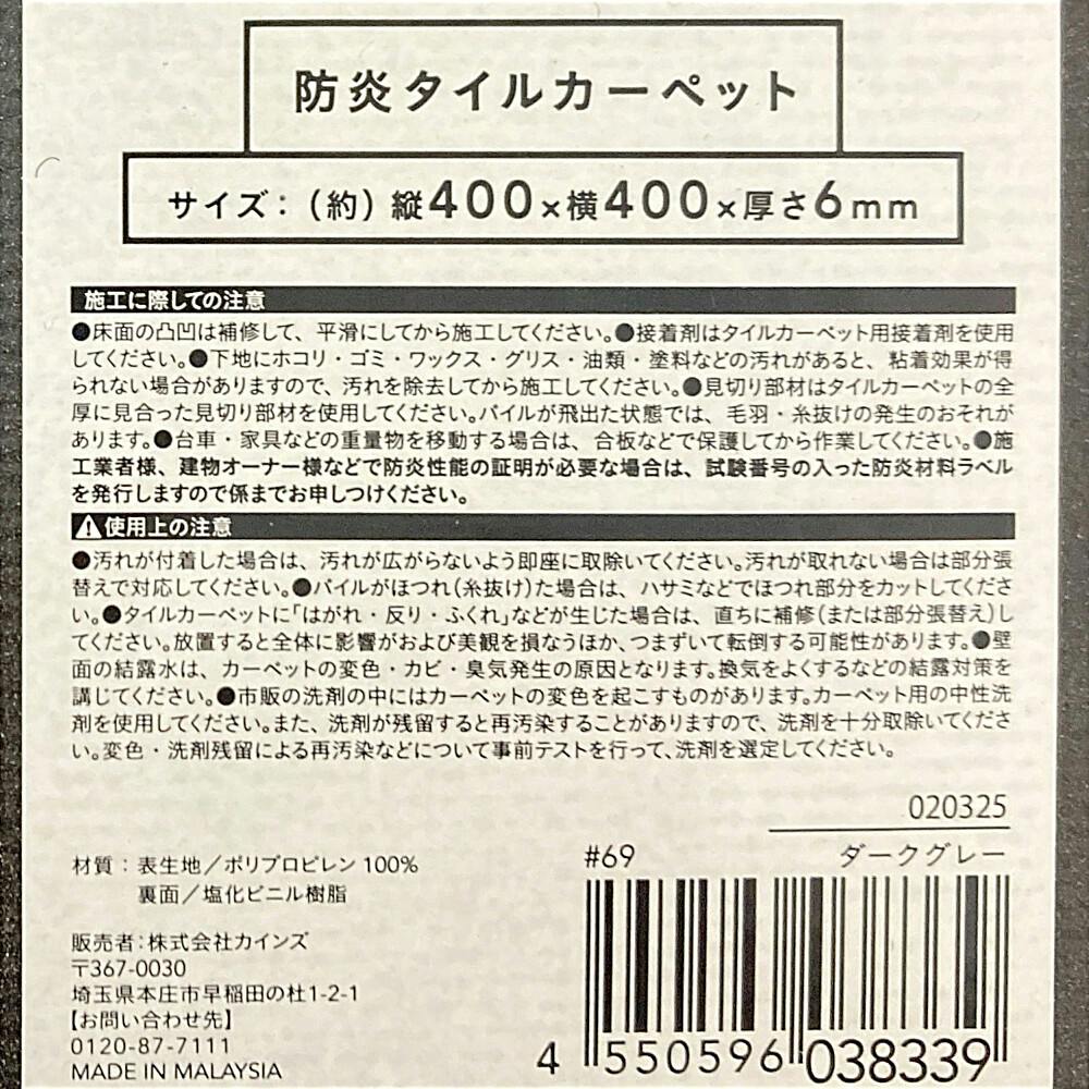防炎タイルカーペット ダークグレー 40×40cm
