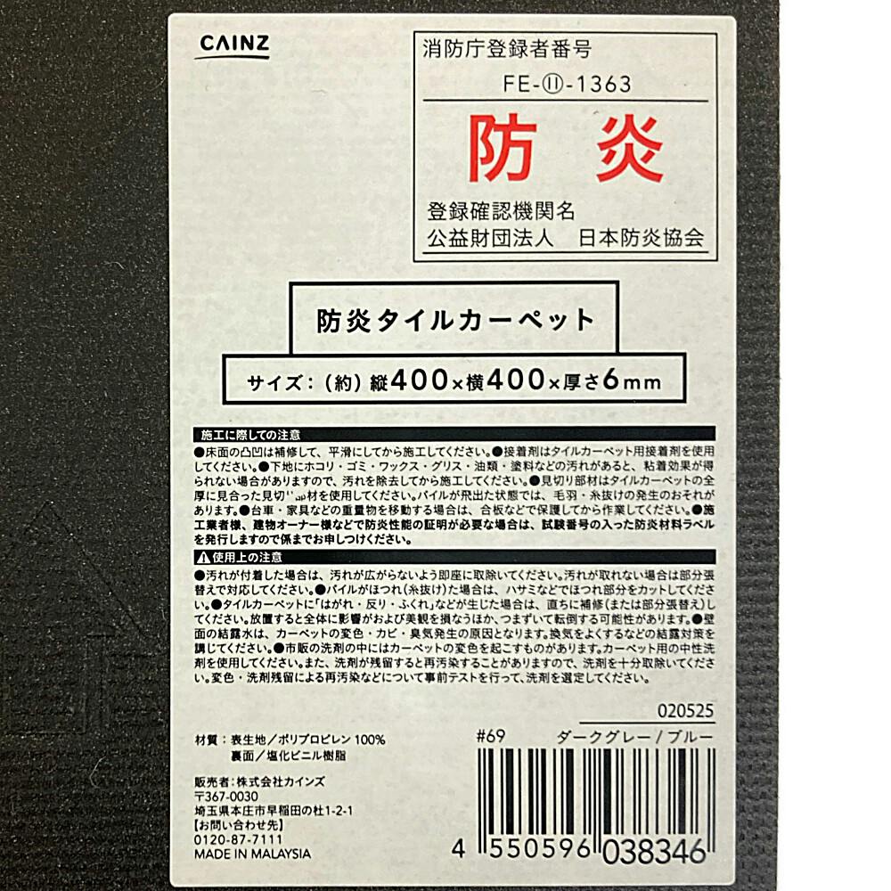 防炎タイルカーペット ダークグレー/ブルー 40×40cm