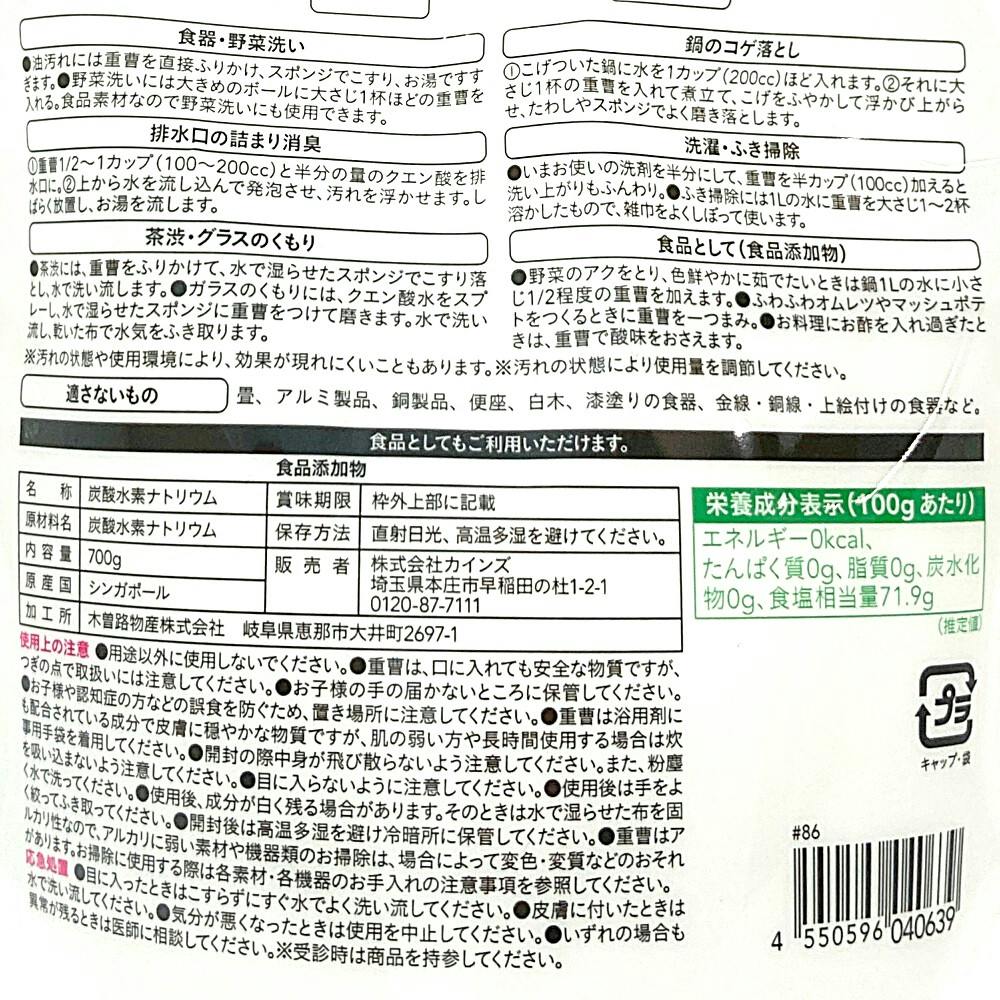 カインズ 食品にも使用できる重曹 詰替 700g