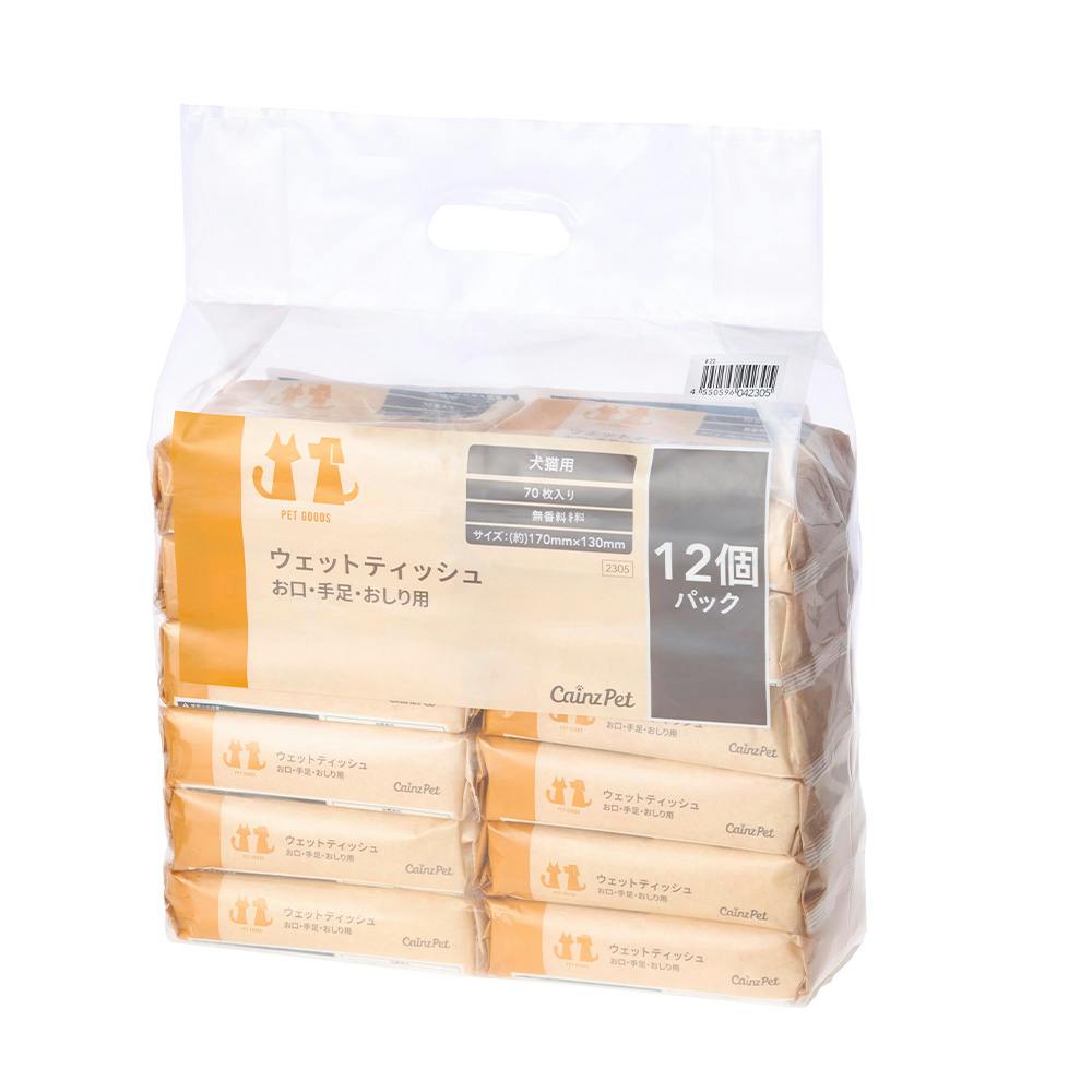 ・ウェットティッシュが12個入りの大容量お買い得商品・お口、手足、おしり用