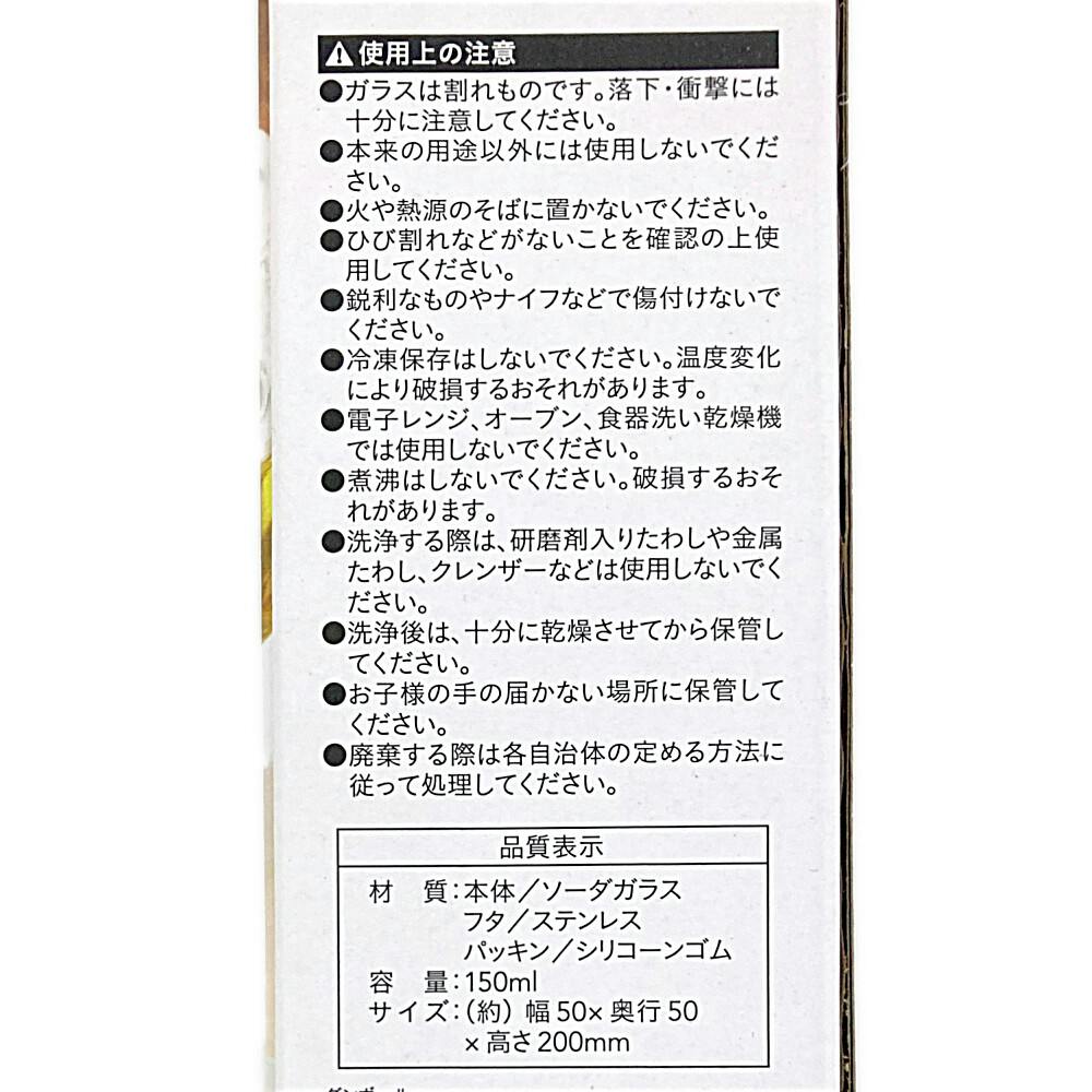 ●本体/ソーダガラス ●フタ/ステンレス ●パッキン/シリコーンゴム