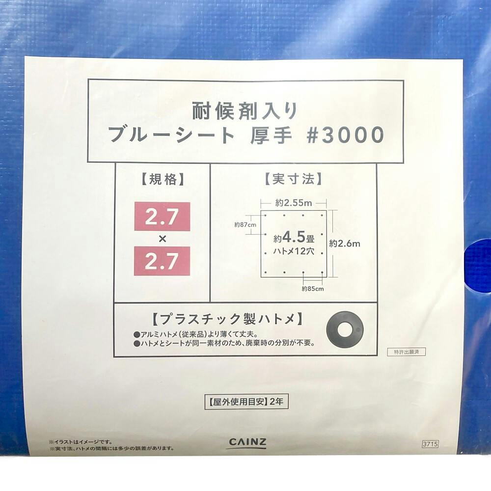 • カインズ 耐候剤入り ブルーシート #3000 厚手 2.7m 2.7m 約4.5畳 ハトメ付き