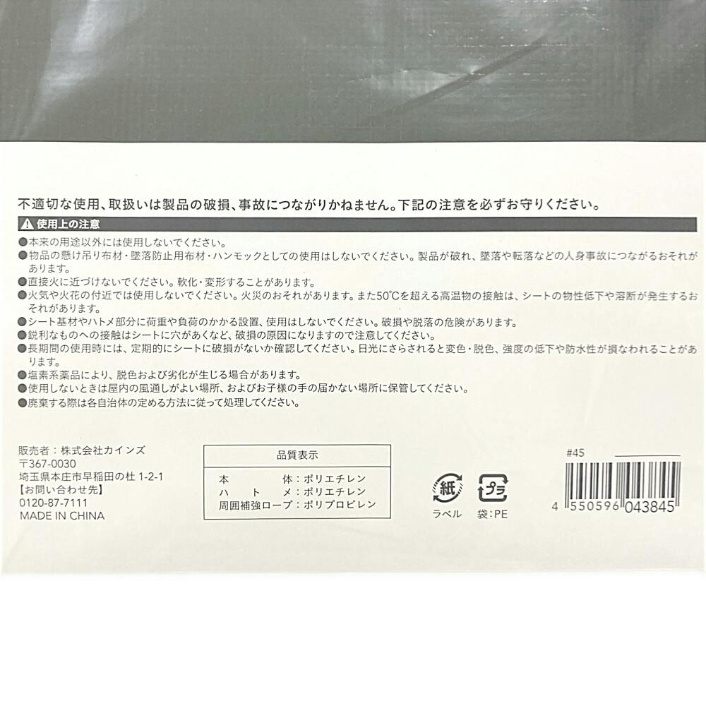 ●本来の用途以外に使用しないでください。●物品の懸け吊り布材や墜落防止用布材、あるいはハンモックとしての使用はしないでください。製品が破れ、墜落や転落などの人身事故につながる恐れがあります。