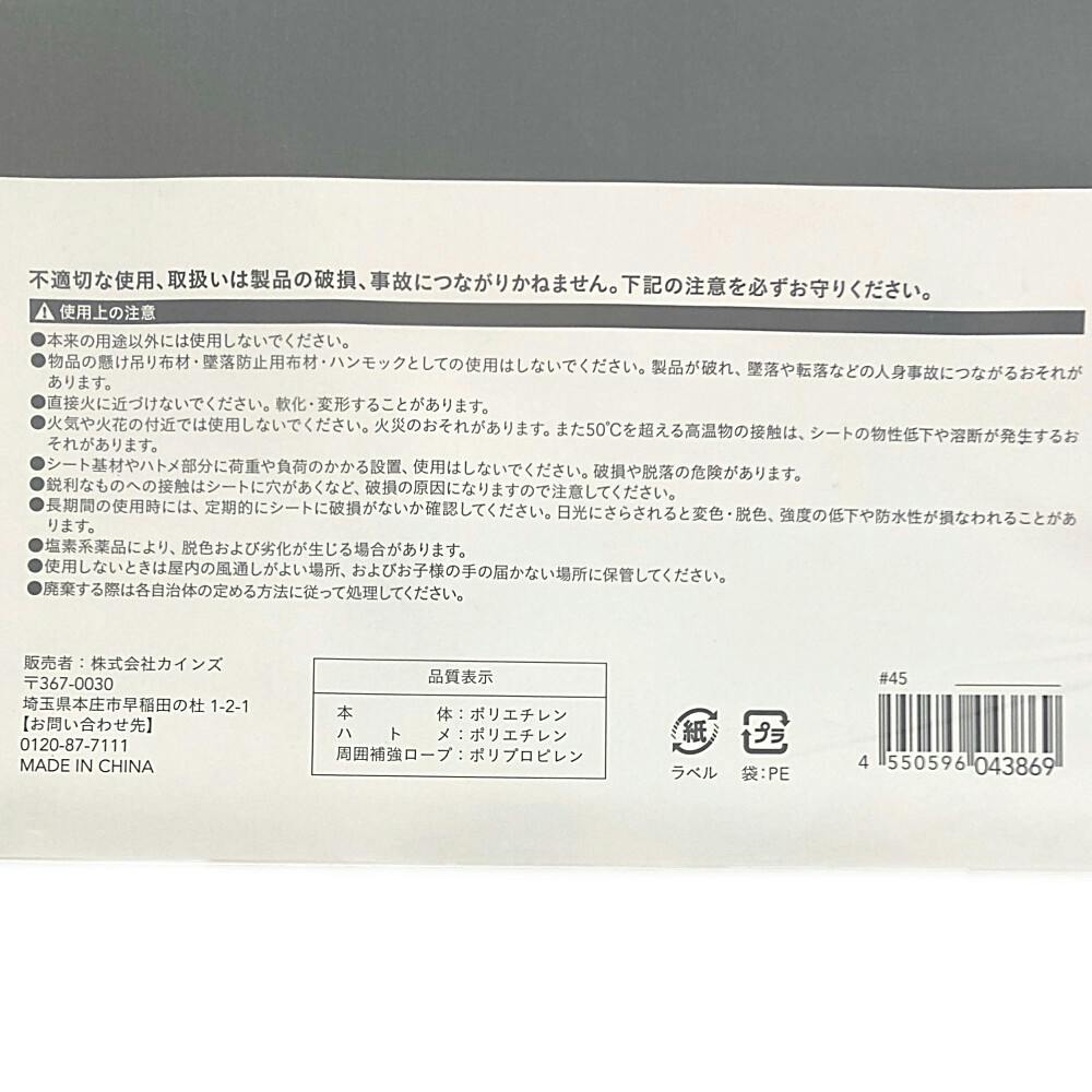 ●本来の用途以外に使用しないでください。●物品の懸け吊り布材や墜落防止用布材、あるいはハンモックとしての使用はしないでください。製品が破れ、墜落や転落などの人身事故につながる恐れがあります。