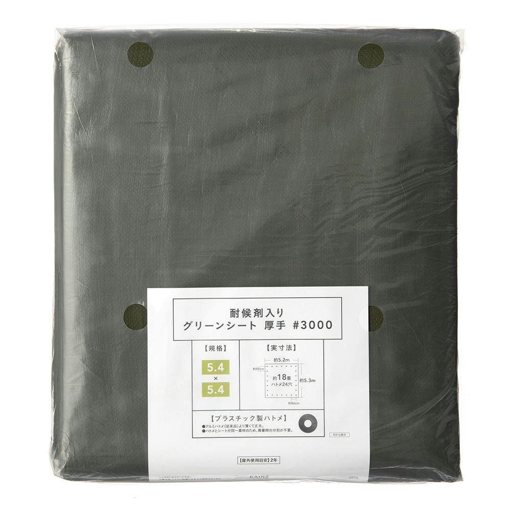 カインズ 耐候剤入り グリーンシート #3000 厚手 5.4m 5.4m 約18畳 ハトメ付き