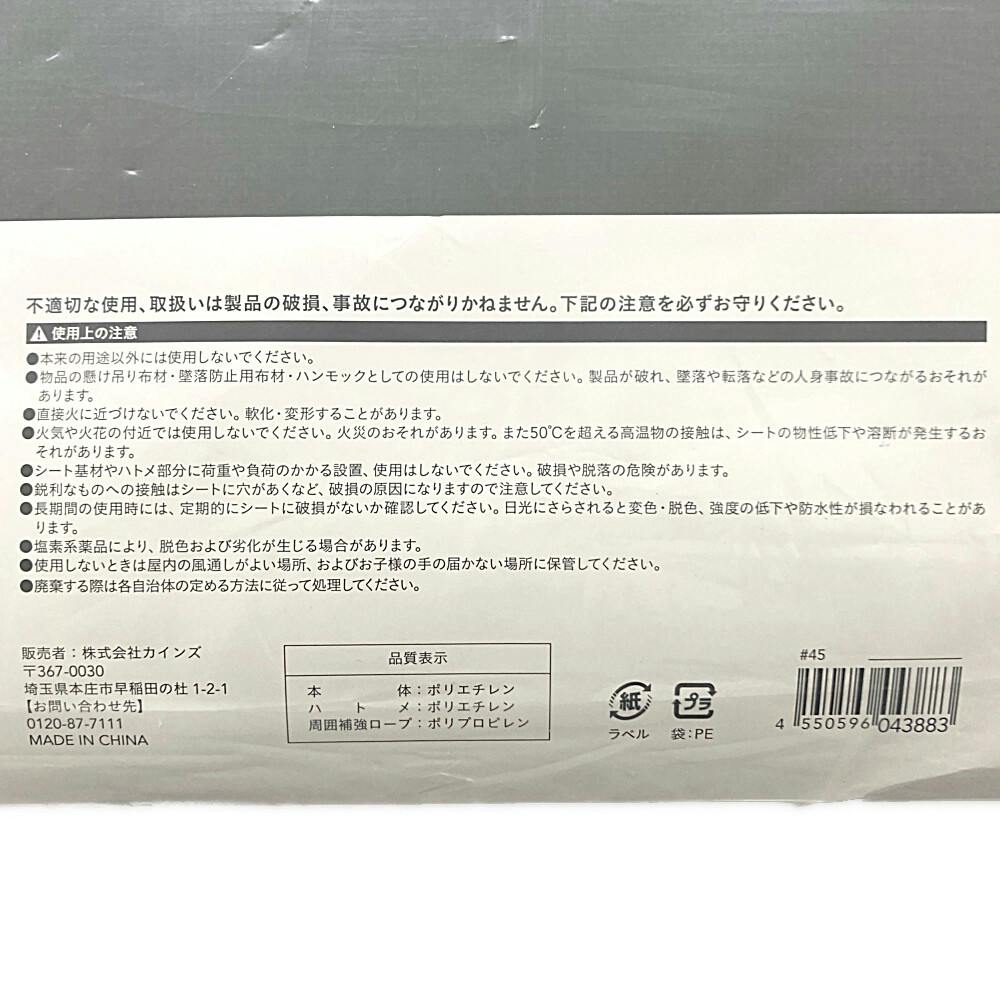 商品本体:ポリエチレン、ハトメ:ポリエチレン、ロープ:ポリプロピレン
