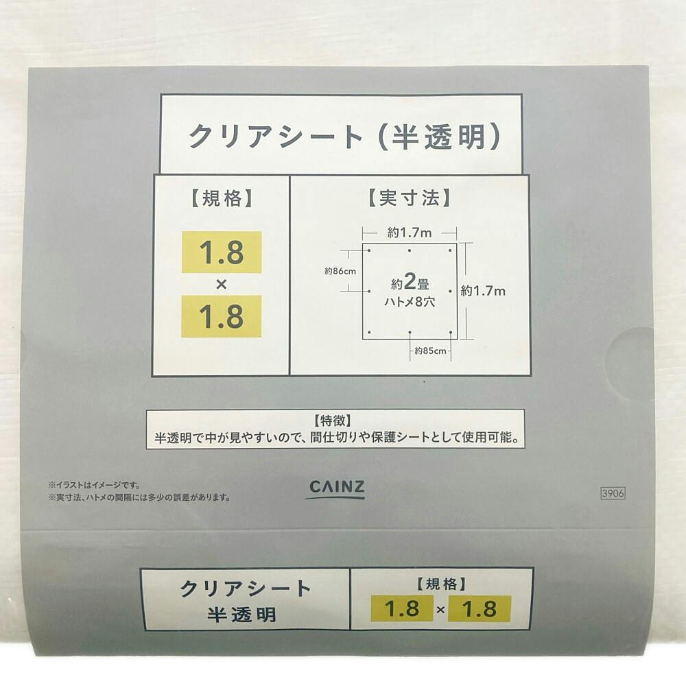 カインズ クリアシート #2000 クリア 半透明 1.8m 1.8m 約2畳 ハトメ付き