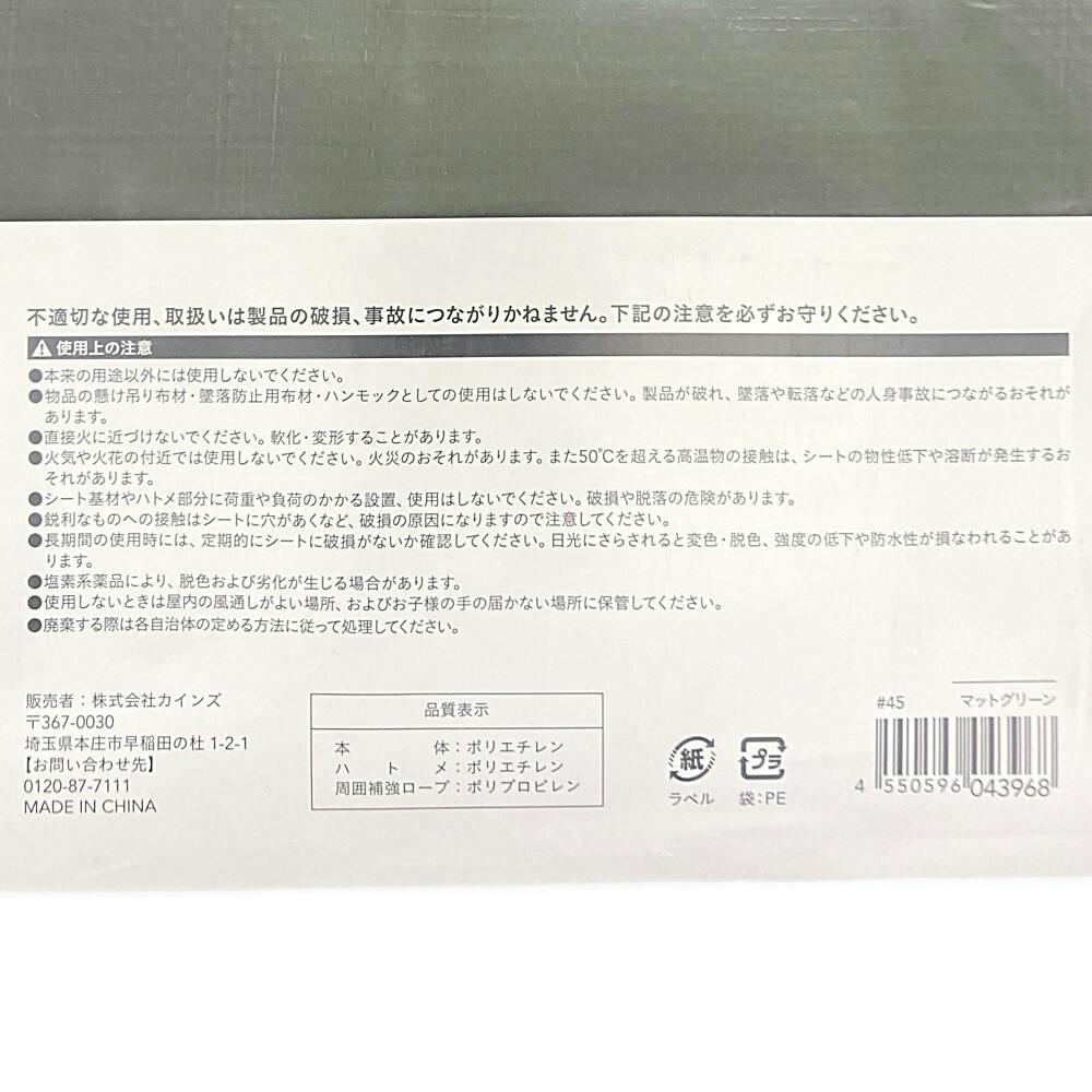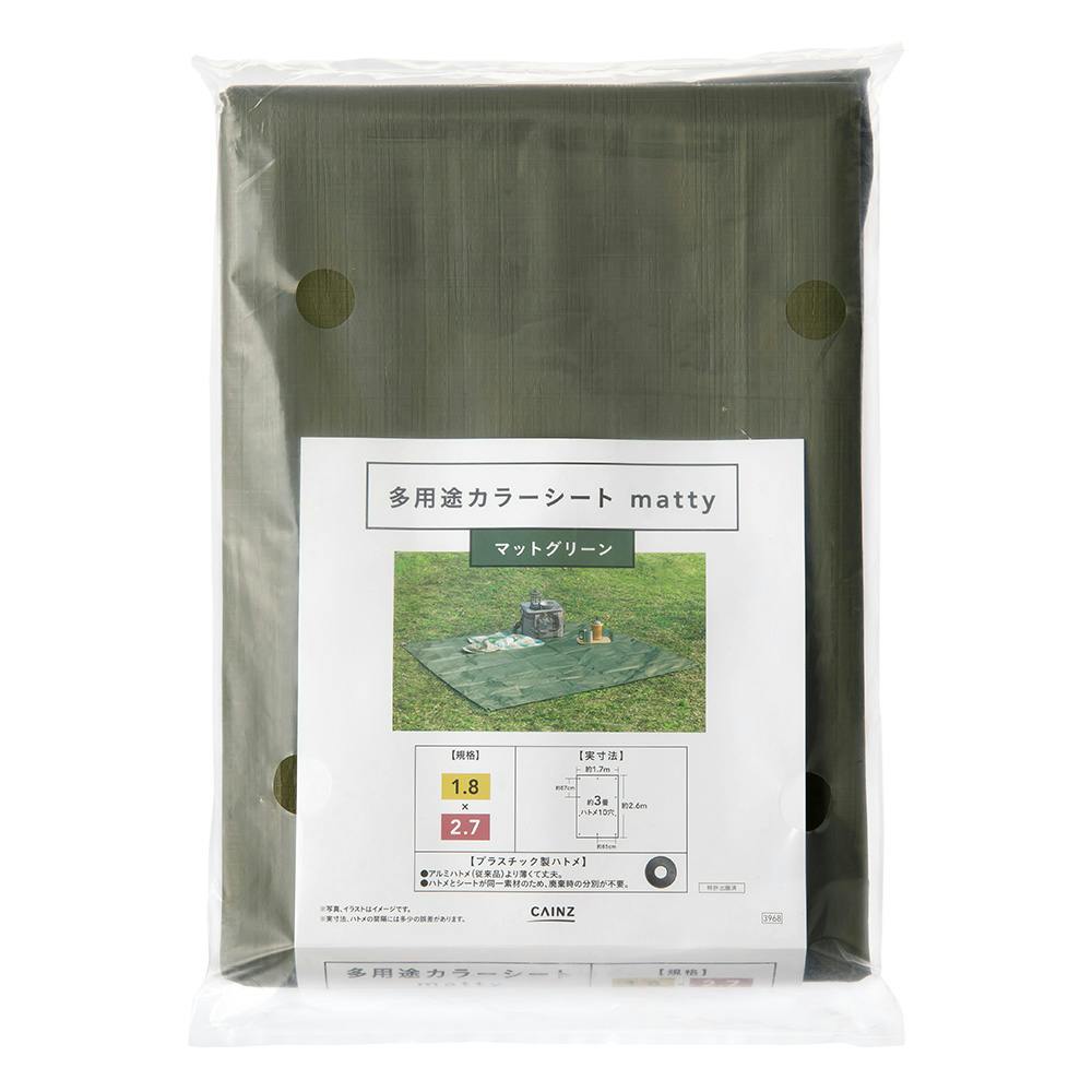 カインズ 多用途カラーシート matty マットグリーン 1.8m 2.7m 約3畳 ハトメ付き
