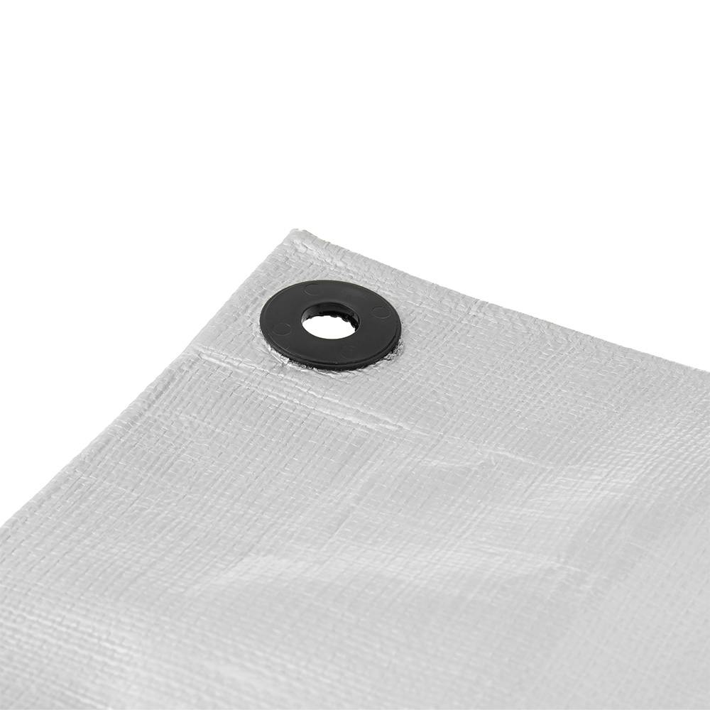 薄くて丈夫なプラスチックハトメ採用のUVシルバーシート。耐候剤入りで長持ち(使用目安3年)。