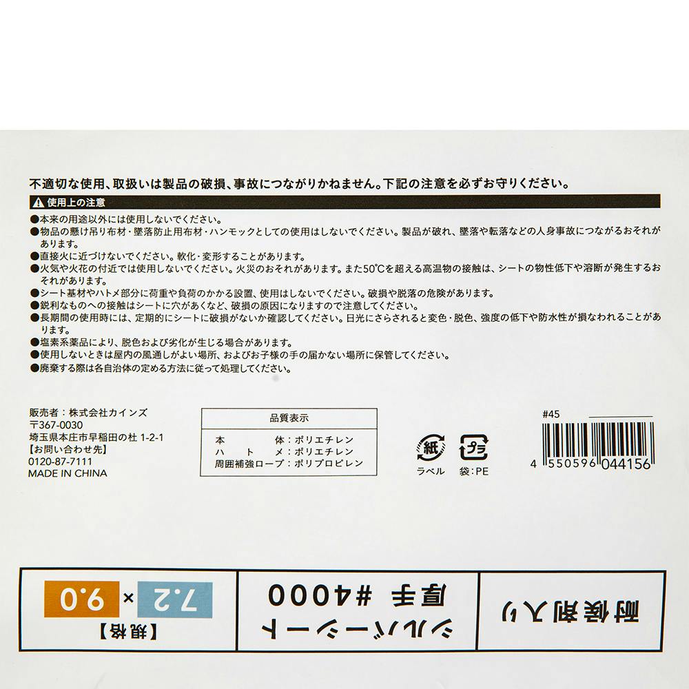●本来の用途以外に使用しないでください。●物品の懸け吊り布材や墜落防止用布材、あるいはハンモックとしての使用はしないでください。製品が破れ、墜落や転落などの人身事故につながる恐れがあります。