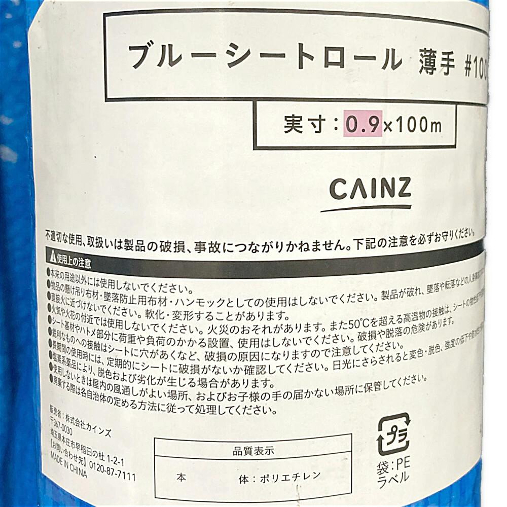カインズ ブルーシートロール #1000 薄手 0.9m 100m