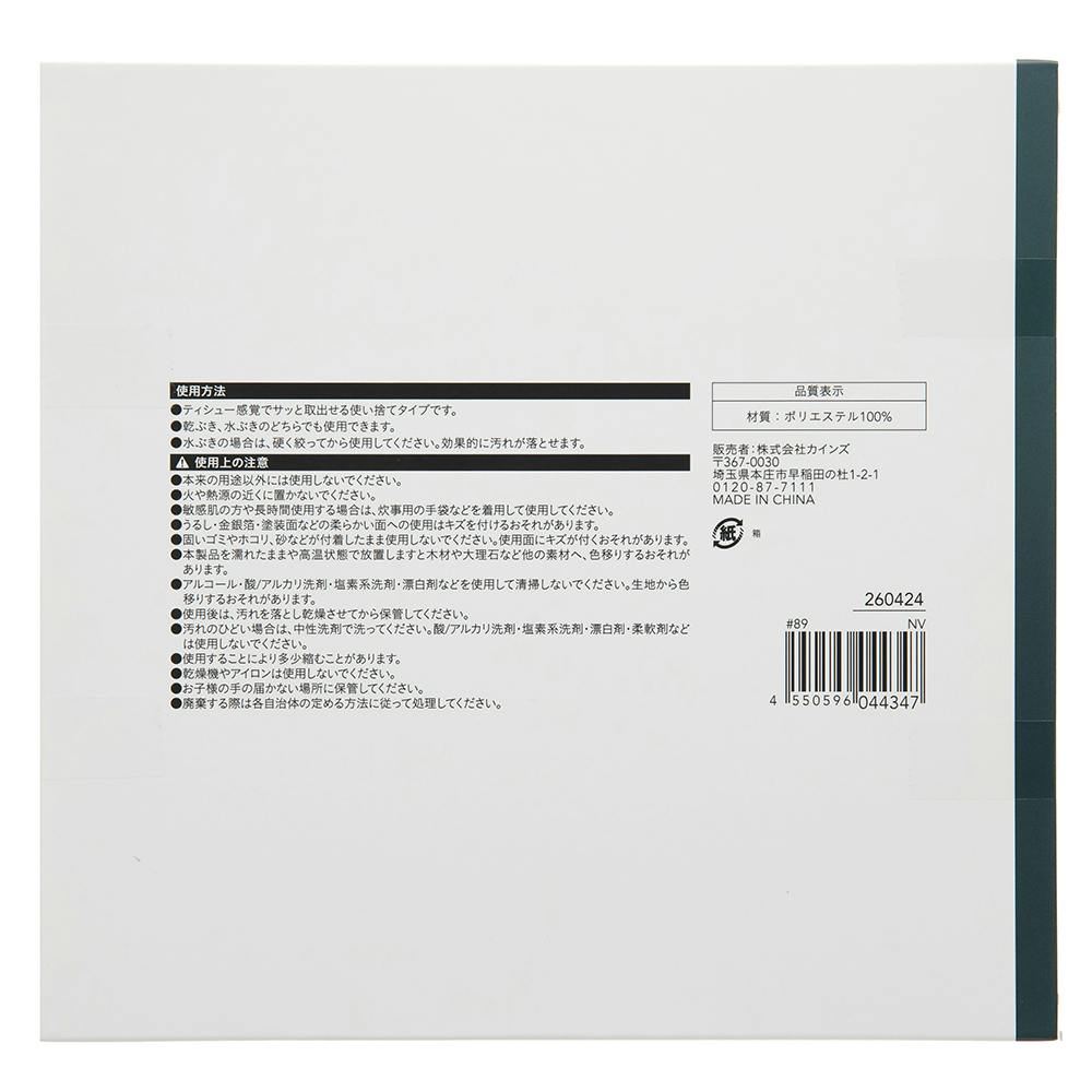 ●ティシュー感覚でサッと取り出せる使い捨てタイプです。●乾拭き、水拭きのどちらでも使用できます。●水拭きの場合は、硬く絞ってからご使用ください。効果的に汚れが落とせます。